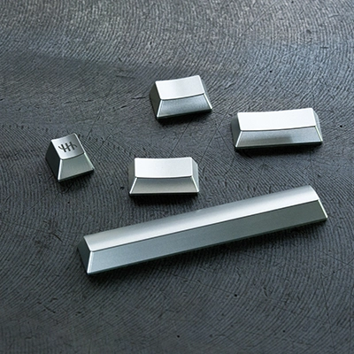 軽量でありながら剛性に優れ、寸法安定性の高いアルミニウムを削り出しで成形したキートップは、エッジの立った輪郭と指先に伝わる明確な反応が特徴で、入力の初動から確かな剛性感と輪郭のある操作感が得られます。