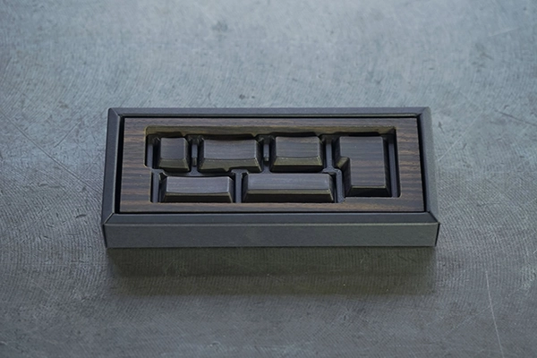- 黒檀キートップ専用にあつらえた高級感あふれるゴールドベースのパッケージは、中の黒檀キートップと相まってあたかも金屏風に筆を入れた絵画のよう。開封の瞬間から始まる体験までも含めて、黒檀という素材と向き合うための一つの“所作”として設計しました。