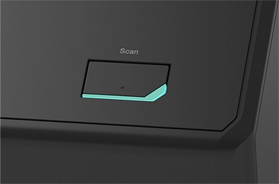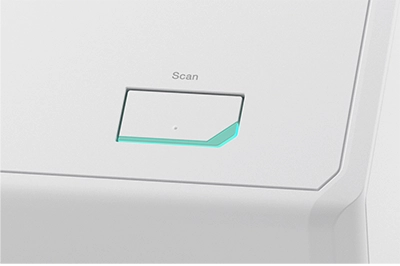 カバーを開ければ連動して原稿台も伸び、自動で電源が入ります。原稿をセットし[Scan]ボタンを押すだけで電子化が完了します。