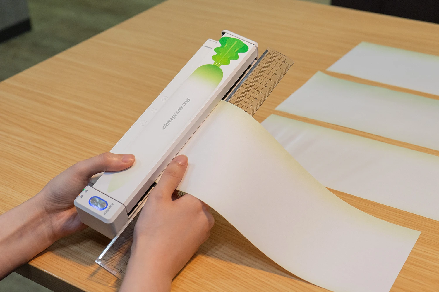 - 業務用スキャナーで培った技術による安定給紙技術により、薄紙などスキャンが難しい原稿にも幅広く対応