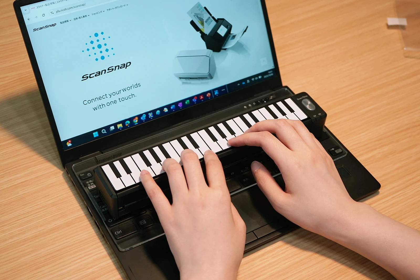 ScanSnap S1100とキーボードが程好い高さに配置でき、キーボードが邪魔することなくスキャンニングできます。